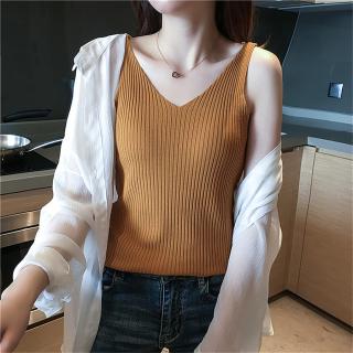 v领吊带背心女夏季内搭冰丝针织黑白色小心机打底衫无袖上衣外穿
