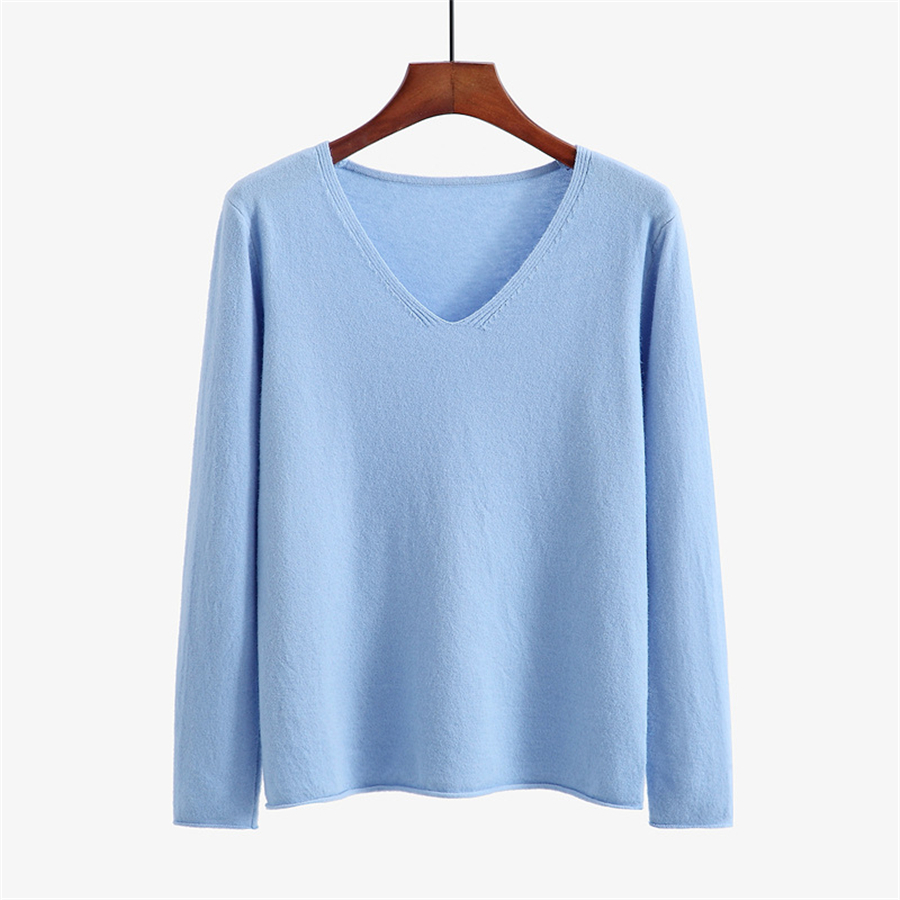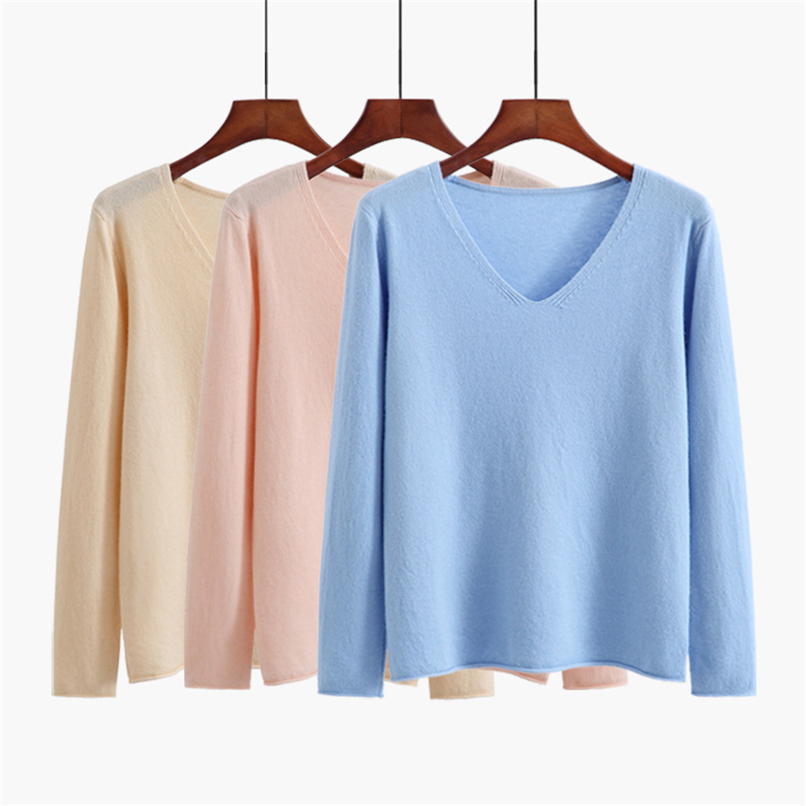 2019春季新款网红毛衣女韩版套头短款宽松抗起球V领打底衫针织衫