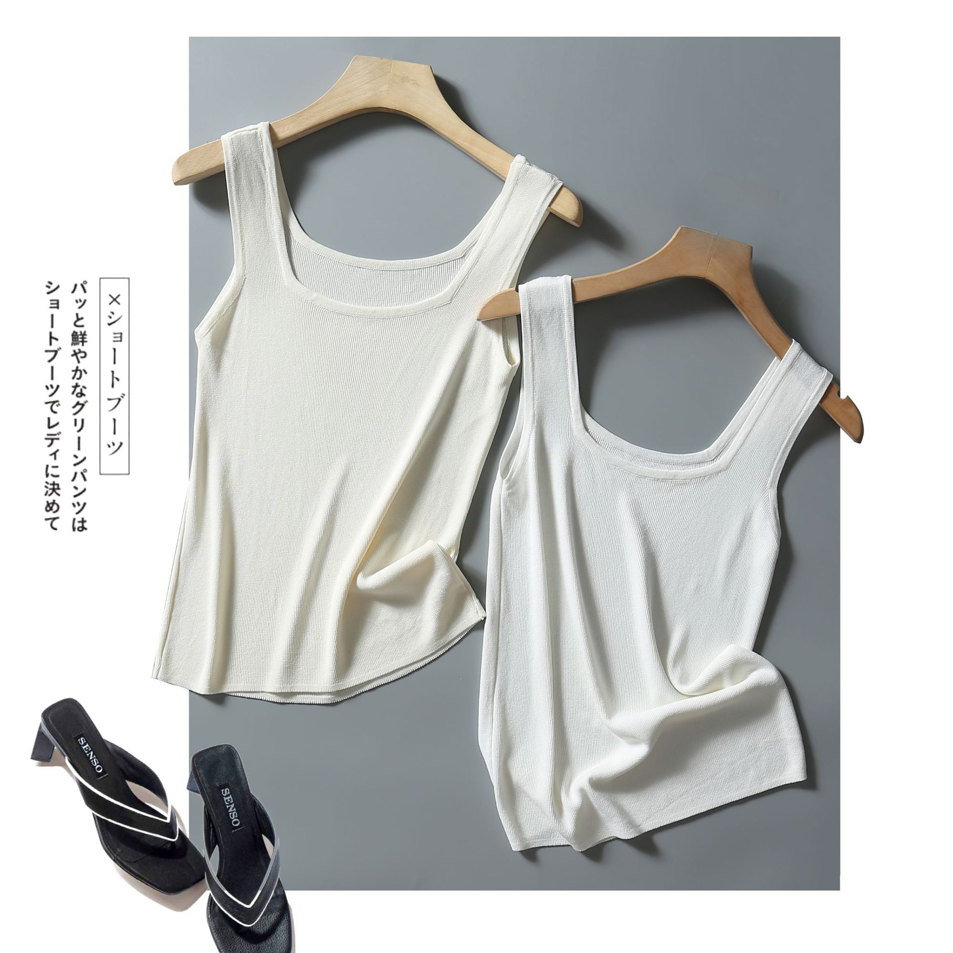 2021夏新款方领无袖冰丝针织背心女外穿ins潮网红内搭弹力吊带